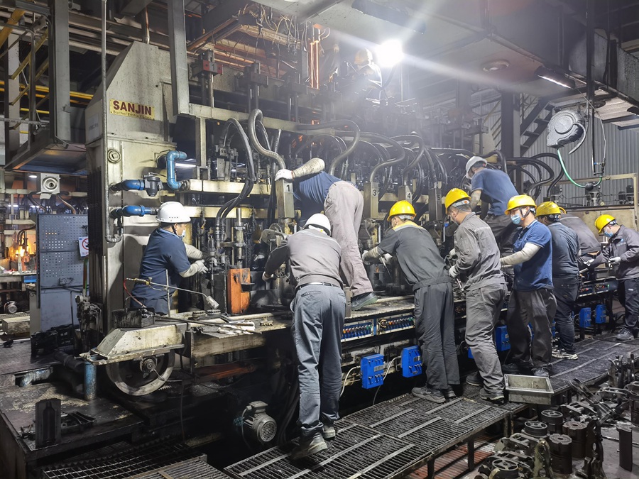 (成(cheng)型部(bu)正(zheng)在進行(xing)換產(chan)工作)